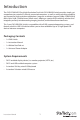 Technical Support StarTech.com’s lifetime technical support is an integral part of our commit-ment to provide industry-leading solutions. If you ever need help with your product, visit www.startech.com/ support and access our comprehensive selection of online tools, documentation, and downloads. Warranty Information This product is backed by a three year warranty. In addition, StarTech.