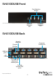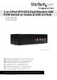 Introduction The StarTech.com SV231DDUSB 2-port Dual Monitor KVM Switch (DVI+VGA) offers a complete dual display multimedia switching solution, allowing users to control 2 computers using a single USB mouse and keyboard peripheral set. With support for high-resolution video interfaces, the versatile dual monitor KVM switch provides 1 VGA (analog) and 1 DVI-I port per computer connection, as well as audio switching capability between connected computers.