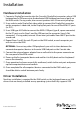 Technical Support StarTech.com’s lifetime technical support is an integral part of our commitment to provide industry-leading solutions. If you ever need help with your product, visit www.startech.com/support and access our comprehensive selection of online tools, documentation, and downloads. For the latest drivers/software, please visit www.startech.com/downloads Warranty Information This product is backed by a two year warranty. In addition, StarTech.