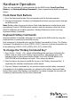 Hardware Operation There are two methods of switch operation for the KVM Switch: Front-Panel Push Buttons, and Keyboard Hotkey Commands. Steps of operation for both are outlined below. Front-Panel Push Buttons 1. Press the front panel button that corresponds with the desired computer. 2. The desired computer’s Display(s) and keyboard and mouse are now active through the KVM console.