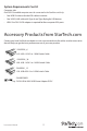 System Requirements Cont’d Computer side Each USB 2.0 enabled computer must be connected to the StarView switch by: • One HDB15 male-to-female VGA cable or monitor • One USB 2.0 A-B cable with Type-A and Type-B plug for USB devices • HDB-15 to DB-15 VGA adapter is required for Mac computer VGA ports Accessory Products from StarTech.com Contact your local StarTech.com dealer or visit www.startech.com for cables or other accessories that will help you get the best performance out of your new product.