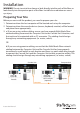 Installing the Computer Unit 1. Place the Computer Unit near the computer that needs to be controlled. 2. Switch off the computer and disconnect any connected devices. OPTIONAL: If you wish to have console access locally to the Host computer, connect a USB mouse, keyboard, and DVI monitor to the connectors marked as “Console” on the Computer Unit. 3. Connect the power adapter from an AC electrical outlet to the unit. 4. Using the provided StarTech.
