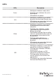 LEDs LEDs Description • Solid green indicates ready status. • Flashing green indicates the unit is booting up. • Off indicates no power. Status Instruction Manual Link • Solid green indicates a connection between the Local and Remote units. • Off indicates no connection between the Local and Remote units. Video • Solid green indicates a connection to the Remote unit and the Host computer. • Flashing green indicates a video signal from the Host computer is being transmitted.