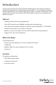 Technical Support StarTech.com’s lifetime technical support is an integral part of our commit-ment to provide industry-leading solutions. If you ever need help with your product, visit www.startech.com/ support and access our comprehensive selection of online tools, documentation, and downloads. Warranty Information This product is backed by a two year warranty. In addition, StarTech.