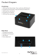 Product Diagram Front View 1. SATA Hard Drive Power button / Power and Activity LED (Button #1) 2. IDE Hard Drive Power button / Power and Activity LED (Button #2) 3. SATA Hard Drive slot (Slot #1) 4. IDE Hard Drive slot (Slot #2) 5. SATA Hard Drive eject button 4 5 3 2 1 Rear View 1. IDE Hard Drive Data Port 2. IDE Hard Drive Power port 3. USB 3.0 port 4.