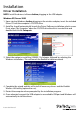 Installation Driver Installation NOTE: Install the drivers/software before plugging in the USB adapter. Windows XP/Server 2003 1. Upon starting Windows, before plugging in the wireless adapter, insert the included Driver CD into the computer’s CD/DVD drive. 2. AutoPlay should automatically launch the Driver/Software installation splash screen. If not, open “My Computer” open the CD/DVD drive the disk is inserted into and double-click the file Setup.exe. 3. Select the option to install the USB 802.