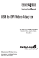 USB2DVIMM6 Instruction Manual USB to DVI Video Adapter 6ft. USB 2.0 to DVI External Multi Monitor Video Adapter Cable Male/Male *Please ensure that the driver installation is complete prior to the physical installation of the USB 2.