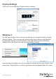 Display Settings Quick access to the Windows “Display Settings” window. Windows 7 The USB Video Adapter drivers allow for all adjustments through the built-in Display Settings window. These settings can be accessed by right-clicking on the Windows Desktop and selecting “Screen Resolution” or by right-clicking on the USB Video Adapter icon in the system tray and selecting “Display Settings”. Select the physical display you wish to change the settings on, from the “Display” drop down menu.