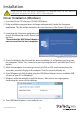 Installation Please ensure that the driver installation is complete prior to the physical installation (plugging in) of the USB 2.0 Video Adapter Driver Installation (Windows) 1. Insert the Driver CD into your CD/DVD-ROM drive. 2. If the installation program does not begin automatically, locate the Setup.exe application. This file will be located in the root directory of the Driver CD (e.g. D:\). 3. Executing the Setup.exe application will launch the following screen.