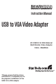 USB2VGAMM6 Instruction Manual USB to VGA Video Adapter 6ft. USB 2.0 to VGA External Multi Monitor Video Adapter Cable - Male/Male *Please ensure that the driver installation is complete prior to the physical installation of the USB 2.