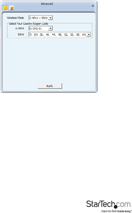 can select between 2.4GHz only, 5GHz only or 2.4 + 5 GHz.
