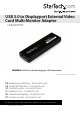 USB 3.0 to Displayport External Video Card Multi Monitor Adapter USB32DPPRO WARNING! Install Drivers before plugging in USB video adapter. *actual product may vary from photos DE: Bedienungsanleitung - de.startech.com FR: Guide de l'utilisateur - fr.startech.com ES: Guía del usuario - es.startech.com IT: Guida per l'uso - it.startech.com NL: Gebruiksaanwijzing - nl.startech.com PT: Guia do usuário - pt.startech.com For the most up-to-date information, please visit: www.startech.