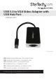 Introduction The USB32VGAEH USB 3.0 to VGA® Adapter turns an available USB 3.0 port into a VGA output port with high resolution 1920x1200 video support. The adapter features a built-in 1-Port USB 3.0 hub, which offers a connection port in place of the USB port used for connecting the VGA adapter – an ideal workaround for Ultrabook™ or laptop users where only a limited number of USB ports are available.