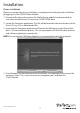 Installation Driver Installation Please ensure that the driver installation is complete prior to the physical installation (plugging in) of the USB 3.0 Video Adapter 1. Download the latest drivers from the StarTech.com website (recommended), or insert the included Driver CD into your CD/DVD-ROM drive. 2. Locate the Setup.exe application. This file will be located in the root directory of the Driver CD (e.g. D:\) or downloaded file. 3. Executing the Setup.exe application will launch the following screen.