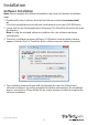 Installation Software Installation Note: Please complete the Software Installation steps prior to Hardware Installation steps. 1. Download the latest software from the StarTech.com website (recommended) or Insert the included driver and software installation disc into your DVD-ROM drive. 2. Locate and run the Setup application (Setup.exe). This file will be located in the main file directory. Note: If using the included software installation disc, the software may begin automatically. 3.
