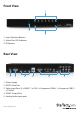 Front View 2 3 1 1. Input Selection Buttons 2. Active Port LED Indicator 3. IR Receiver Rear View 1 2 3 4 3 5 1. Power Supply 2. RS232 Serial Port 3. Video Input Ports (3 x HDMI®, 1 x VGA, 1x Component YPbPr, 1 x Composite CVBS, 1 x S-Video) 4. HDMI® Output Port 5.