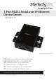 Port RS232 Serial over IP Ethernet Device Server NETRS2321P *actual product may vary from photos DE: Bedienungsanleitung - de.startech.com FR: Guide de l'utilisateur - fr.startech.com ES: Guía del usuario - es.startech.com IT: Guida per l'uso - it.startech.com NL: Gebruiksaanwijzing - nl.startech.com PT: Guia do usuário - pt.startech.com For the most up-to-date information, please visit: www.startech.