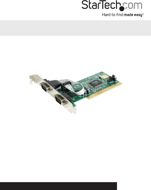 Introduction Thank you for purchasing a high speed PCI RS-232 serial card from StarTech.com. This product adds one (PCI1S550, PCI1S550_LP) or two (PCI2S550, PCI2S550_LP) serial ports to your computer. This product is the perfect way to protect your investment in serial technology, and works with virtually any peripheral with a serial interface, including printers, modems, PDAs, and more. Features • Adds high speed RS-232 serial ports to your computer • Complies with the PCI 2.