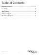 Table of Contents Packaging Contents................................................................................1 Installation...............................................................................................3 Specifications...........................................................................................6 Technical Support...................................................................................7 Warranty Information........................................................