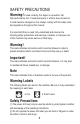CONTENTS Preface Safety Precautions Warning Labels Safety Precautions Main Specifications Assembly 1.) Opening The Box 2.) Assembly 3.