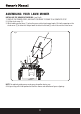 ASSEMBLING YOUR LAWN MOWER INSTALLING THE GRASS CATCHER BAG (see Fig.4) 1. UNPLUG THE POWER CORD, AND WAIT FOR BLADE TO COME TO A COMPLETE STOP. 2. Lift the chute cover (1). 3. While holding up the cover (1), place the grass catcher bag hanger hooks (2) into the opening on the chute cover (1) to allow the hanger hooks to attach to the rod (3) which secures the chute cover. 2 Fig.4 1 3 NOTE: For optimal performance empty grass bag often during use.