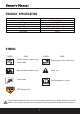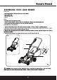 PRODUCT SPECIFICATION Component Motor No-load Speed Cutting Path Height Adjustment Wheels Size Unit Weight Specifications 120 V Ac 60 Hz 12 Amp 3 ,6 0 0 R P M 20 in. (508 mm) 1-3/4–3-3/4 in. (45 mm-95 mm) 7 in. (Front)/ 8 in. (Rear) 26 Kg SYMBOL SYMBOL NAME SYMBOL NAME Serving of toes or fingers-rotary mower blade. Thrown objects from mower deck. Keep bystanders/children away. Safety alert. Slip on slope. Read the operator’s manual. CPSC Danger label.