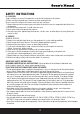 SAFETY INSTRUCTIONS • Always wear safety glasses with side shields. Every day glasses have only impact resistant lenses. They are NOT safety glasses. Following this rule will reduce the risk of eye injury. Use face mask if operation is dusty. • Wear eye protection which is marked to comply with ANSI Z87.1 when operating this product.
