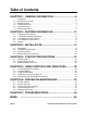 Table of Contents CHAPTER 1: GENERAL INFORMATION................................... 6 1-1 1-2 1-3 1-4 1-5 1-6 Introduction.................................................................................................................. 6 Necessary Documents ................................................................................................ 6 Models Covered .......................................................................................................... 6 Standard Features............