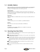 1-4 Available Options SMC Series Chillers are available with options that tailor the unit to your requirements. Some are factory installed, some can be retrofitted in the field. Consult your local Sterling, Inc. Sales Representative. Some of these options are: Special Pumps Special pump options are available for greater pressure and flow rates. Bronze and stainless steel wetted surface standard flow pumps ranging from 30 psi (207 kPa) to 60 psi (414 kPa) are available.