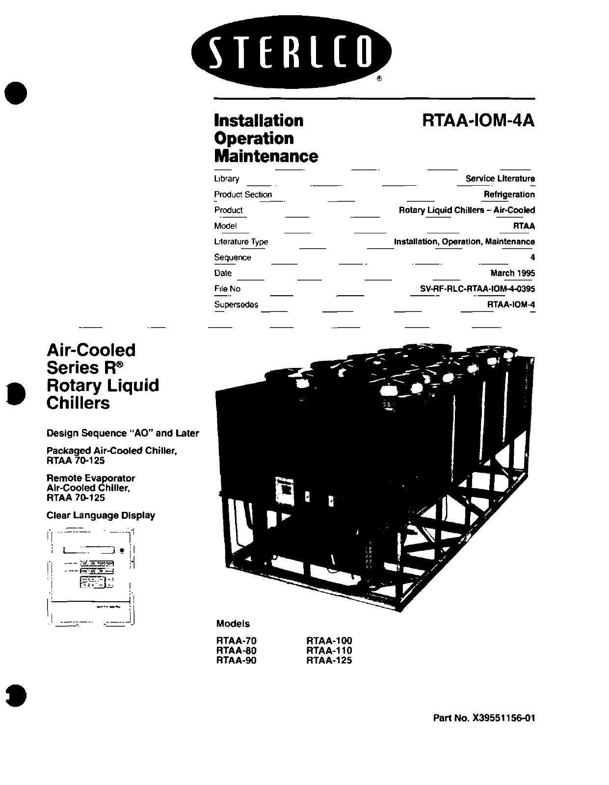 - Sterlco Series R Air-Cooled Rotary Liquid Chiller Installation Operation Maintenance Manual