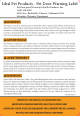 Ideal Pet Products - Pet Door Warning Label Pet Door parts/Warranty: Ideal Pet Products, Inc. 1-800-378-4385 24735 Ave.
