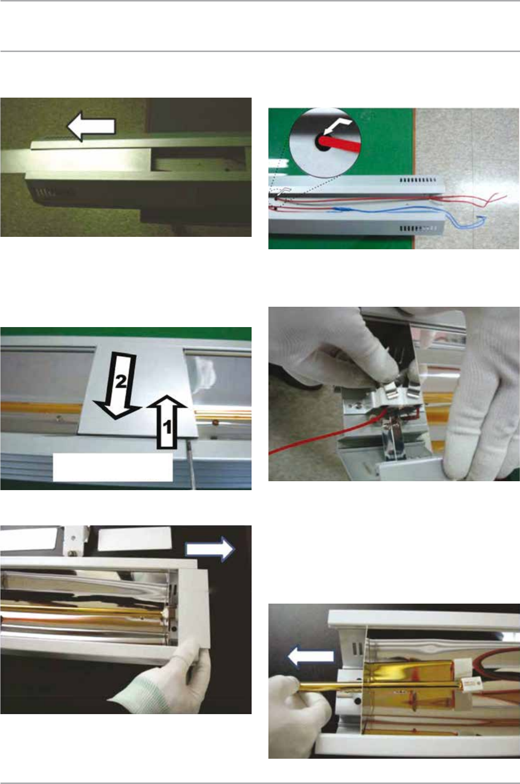 14. Retirez les pinces de retenue de la lampe chauffante des deux