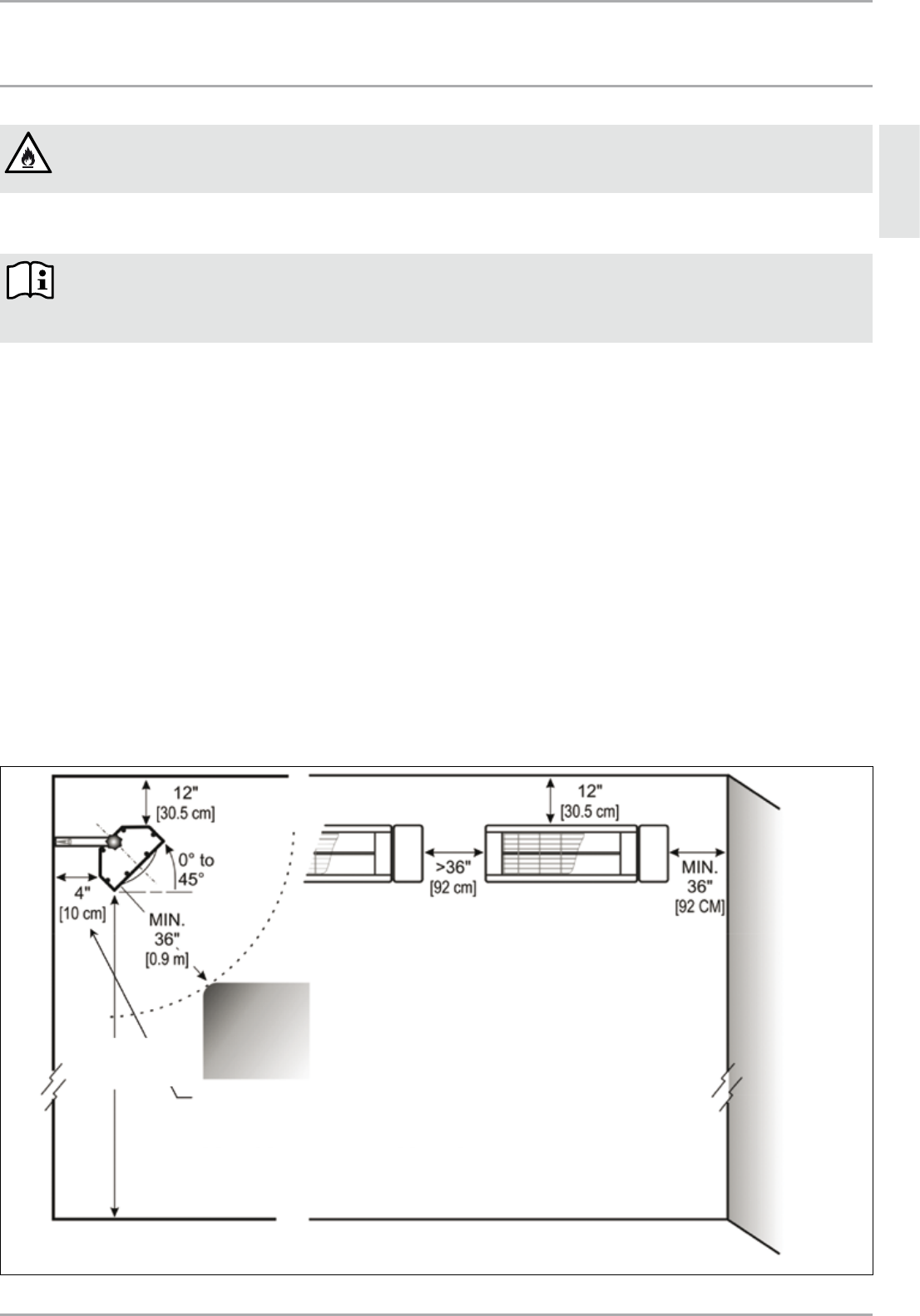2. Veillez à ce que les distances minimales depuis le radiateur satisfont ou dépassent les exigences minimales stipulées dans la