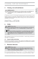 CLEANING, CARE AND MAINTENANCE Cleaning, care and maintenance ! MATERIAL LOSSES: The Galaxy™ hand dryer does not contain any parts serviceable by nonlicensed people. In case of malfuntion please contact a licensed electrician. To clean the case use a soft cloth with a mild detergent if necessary. Never use any abrasive cleaners since they will scratch the finish of the unit. Never spray water or cleaning fluids directly on hand dryer.