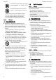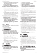 English 4 Safety Precautions ► Use and store the battery at temper‐ atures between ‑ 10 °C and + 50 °C. ► Protect the battery from rain and damp – do not immerse it in fluids. ► ► ► ► Keep battery away from metallic objects. Do not expose battery to high pressure. Do not expose battery to microwaves. Protect battery from chemicals and salts. 4.5.3 Charger WARNING ■ Bystanders, children and animals are not aware of and cannot assess the dangers of a charger or electric current.
