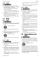 English 4 Safety Precautions Read, understand and save the instruction manual. Wear safety glasses. Confine long hair so that it cannot be sucked into the blower. 4.3 Protect blower and charger from rain and dampness. ■ Users without adequate training or instruction cannot recognize or assess the risks involved in using the blower, battery and charger. The user or other persons may sustain serious or fatal injuries. ► Read, understand and save the instruction manual. Maintain safe distance.