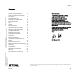 English Guide to Using this Manual Safety Precautions and Working Techniques Assembling the Unit Adjusting the Throttle Cable Fitting the Harness Fuel Fueling Winter Operation Information Before You Start Starting / Stopping the Engine Operating Instructions Replacing the Air Filter Adjusting the Carburetor Spark Plug Storing the Machine Inspections and Maintenance by Dealer Maintenance and Care Minimize Wear and Avoid Damage Main Parts Specifications Maintenance and Repairs Disposal EC Declaration of Conf
