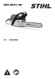 32 Disposal English MS 391: courses and are supplied with the necessary technical information. When repairing the machine, only use replace‐ ment parts which have been approved by STIHL for this power tool or are technically identical. Only use high-quality replacement parts in order to avoid the risk of accidents and damage to the machine. STIHL recommends the use of original STIHL replacement parts.