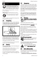 17 Operating Instructions 16.7 English 16.10 If Engine Does Not Start As Soon As the Engine Runs STOP 0 2 0001BA023 KN 1 ► Press down trigger lockout and the blip the throttle trigger (2) – the Master Control lever (1) moves to the run position (F) and the engine settles down to idling speed The master control lever was not returned from the position choke shutter closed l to starting acceleration n in time, the engine may be floo‐ ded.