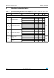 LMV82x, LMV82xA Table 8. Electrical characteristics at Vcc+ = 5 V with Vcc- = 0 V, Vicm = Vcc/2, Tamb = 25° C, and RL connected to Vcc/2 (unless otherwise specified) (continued) Symbol ICC Electrical characteristics Parameter Conditions Supply current (per channel) No load, Vout = Vcc/2 Min. Typ. Max. 300 400 -40°C < T< 125°C 600 Unit µA AC performance Gain bandwidth product 5.5 Fu Unity gain frequency 4.5 Φm Phase margin Gm Gain margin SR Slew rate RL > 1 MΩ, CL = 22 pF, Vout = 0.