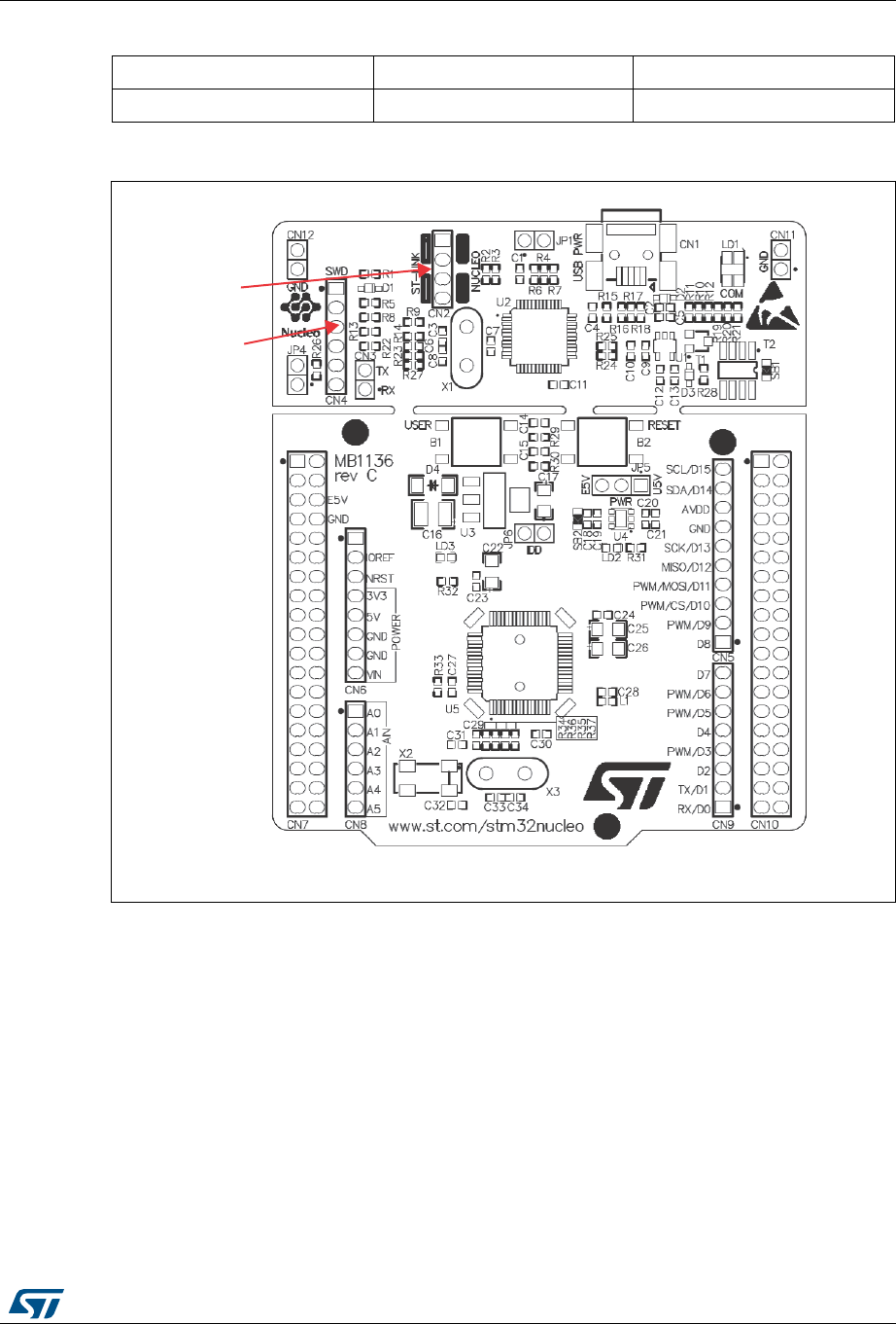 case VIN, E5V or +3V3 is used to power the Nucleo board, using an external power supply