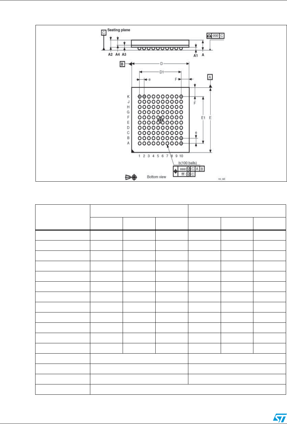 - Table 58. LFBGA100 - 10 x 10 mm low profile fine pitch ball grid array package mechanical data