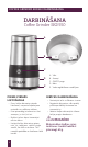 COFFEE GRINDER SKD550 DARBINĀŠANA DARBINĀŠANA Coffee Grinder SKD550 A B C D E PIRMS PIRMĀS LIETOŠANAS • Pirms kafijas dzirnaviņu pirmās lietošanas, noņemiet iepakojuma materiālu un reklāmas uzlīmes. • Esiet piesardzīgi, aizskarot un tīrot asmeņus, jo tie ir ļoti asi. • Notīriet ierīces ārpusi izmantojot mīkstu drānu. • Lietojot kafijas dzirnaviņas pirmo reizi, jūs, iespējams, sajutīsit vieglu smaku, kas nāk no motora. Tā ir normāla parādība un lietošanas laikā izzudīs. 6 A. B. C. D. E.