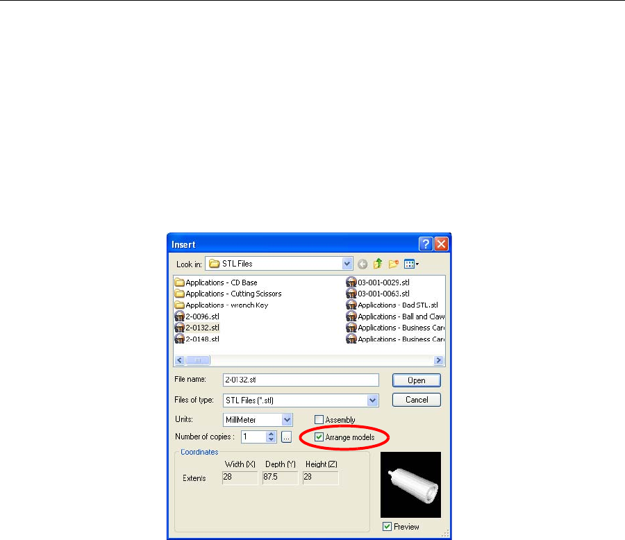 • Anytimeyouinsertanobjectontothebuildtray,selectArrange models