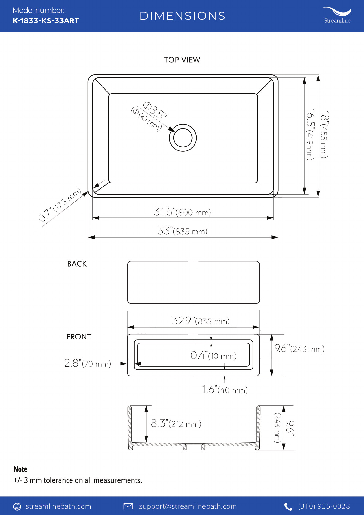 K1 833KS33 ART ) m 5m . 7 1 ( ” 7 .