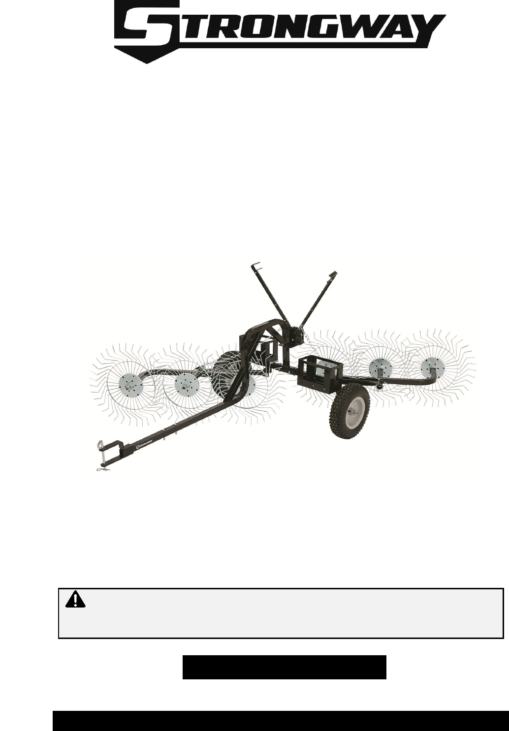Thank you very much for choosing a Strongway product! For future reference, please complete the owner’s record below: Serial Number/Lot Date Code: ________________________________ Purchase Date: ____________________________________________ Save the receipt, the warranty, and this manual. It is important that you read the entire manual to become familiar with this product before you begin using it. This Inline Acreage Rake is designed for certain applications only.