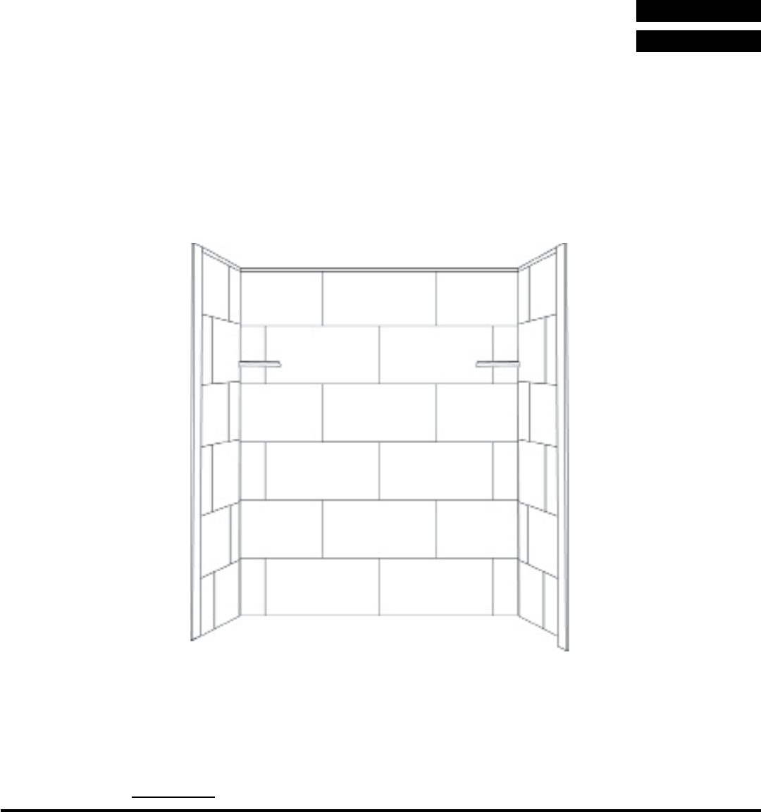 PACKAGE CONTENTS F F G B H I C D A E E K PART A B C D E F G H I K L M DESCRIPTION Lower Back Panel Upper Back Panel Left Side Panel Right Side Panel Front Edge Trim Side Molding Back Molding Left Shampoo Shelf Right Shampoo Shelf Silicone Adhesive Mounting Adhesive Installation Tape QUANTITY 1 1 1 1 2 2 1 1 1 4 1 1 2 LI M