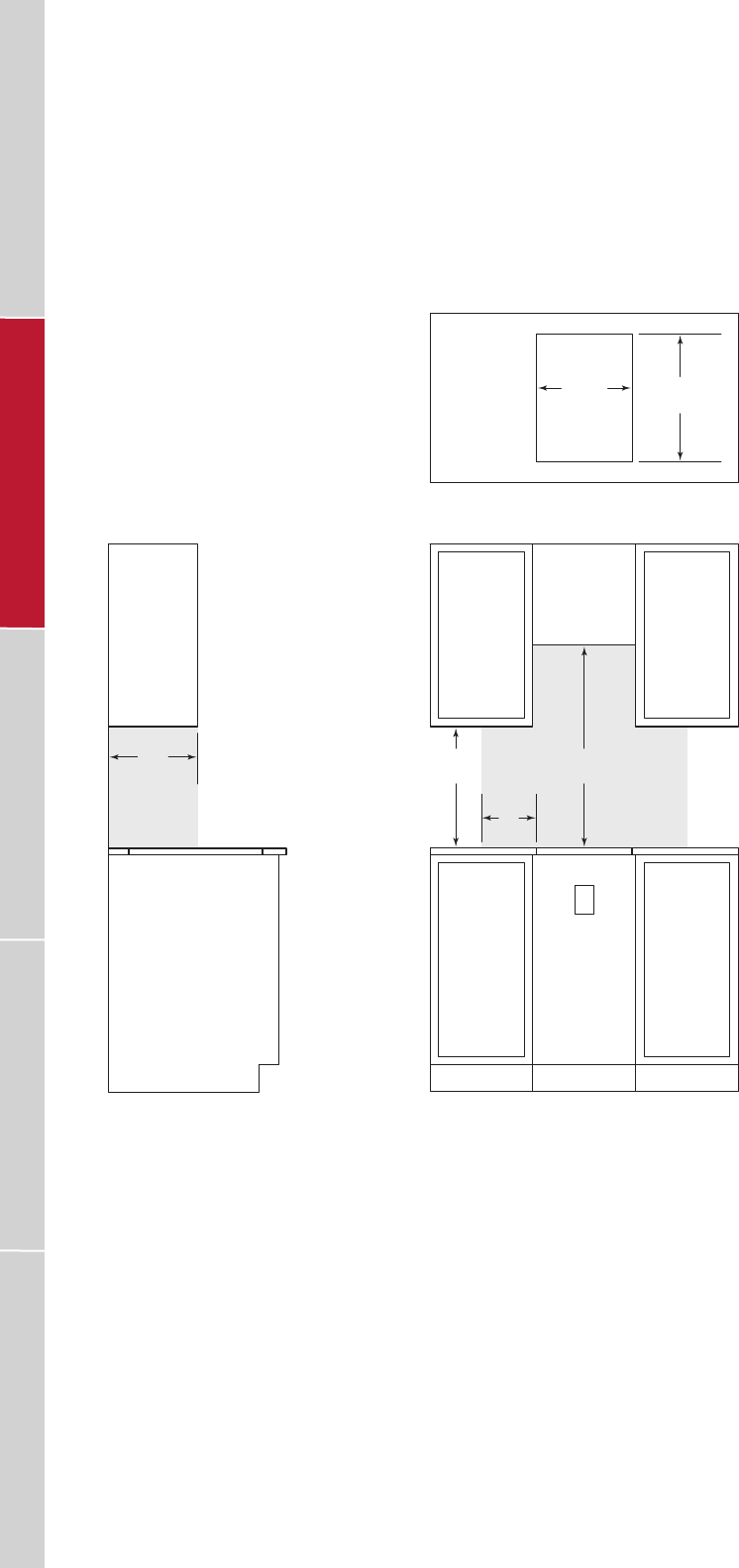 NOTE: Shaded area above countertop indicates minimum clearance to combustible surfaces,