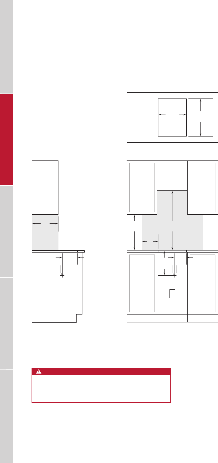 NOTE: Shaded area above countertop indicates minimum clearance to combustible surfaces,