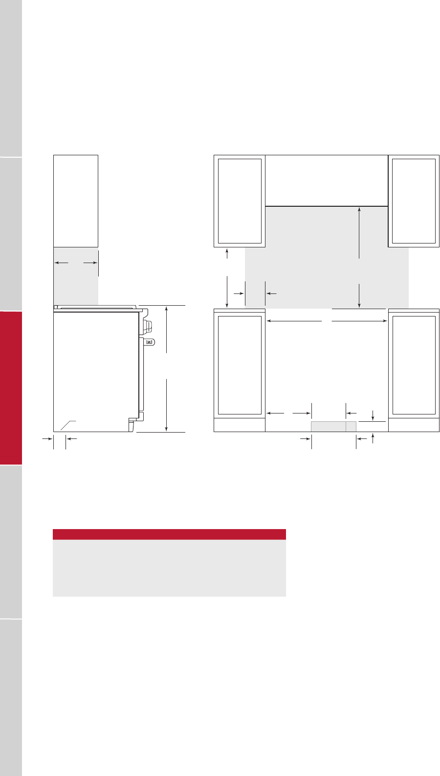 NOTE: Shaded area above countertop indicates minimum clearance to combustible surfaces,